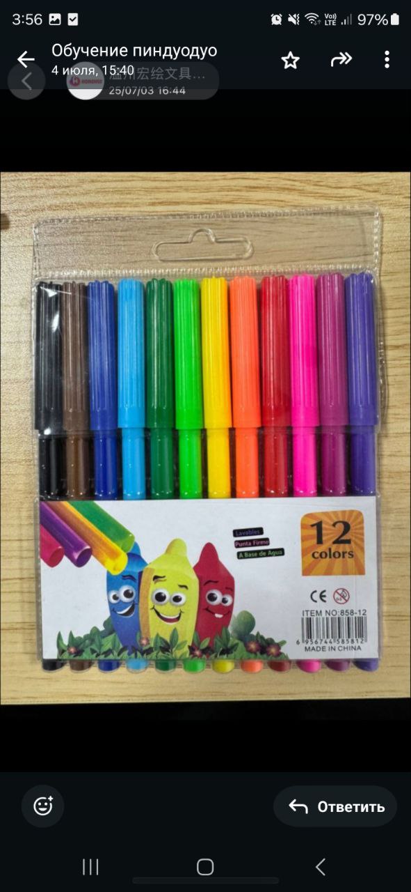 Пластиковая упаковка с 12 разноцветными маркерами. Яркие быстро сохнущие чернила, не размазываются. Подойдут для рисования, письма, выделения.